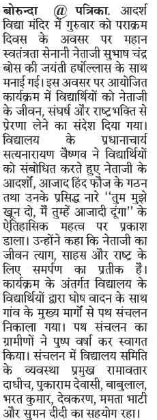 बोरून्दा आदर्श विद्यामंदिर समाचार