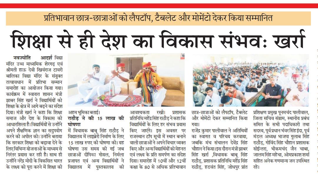 पीपाड़ में विद्यार्थी सम्मान समारोह के समाचार